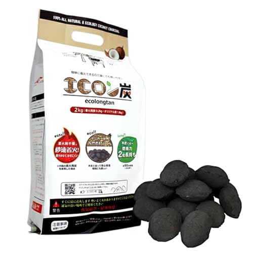 『平城商事 エコロン炭 2kg』は、ヤシガラ(ココナッツ殻)を原料にした環境にやさしい豆炭で、爆ぜにくい安全設計が特徴です。